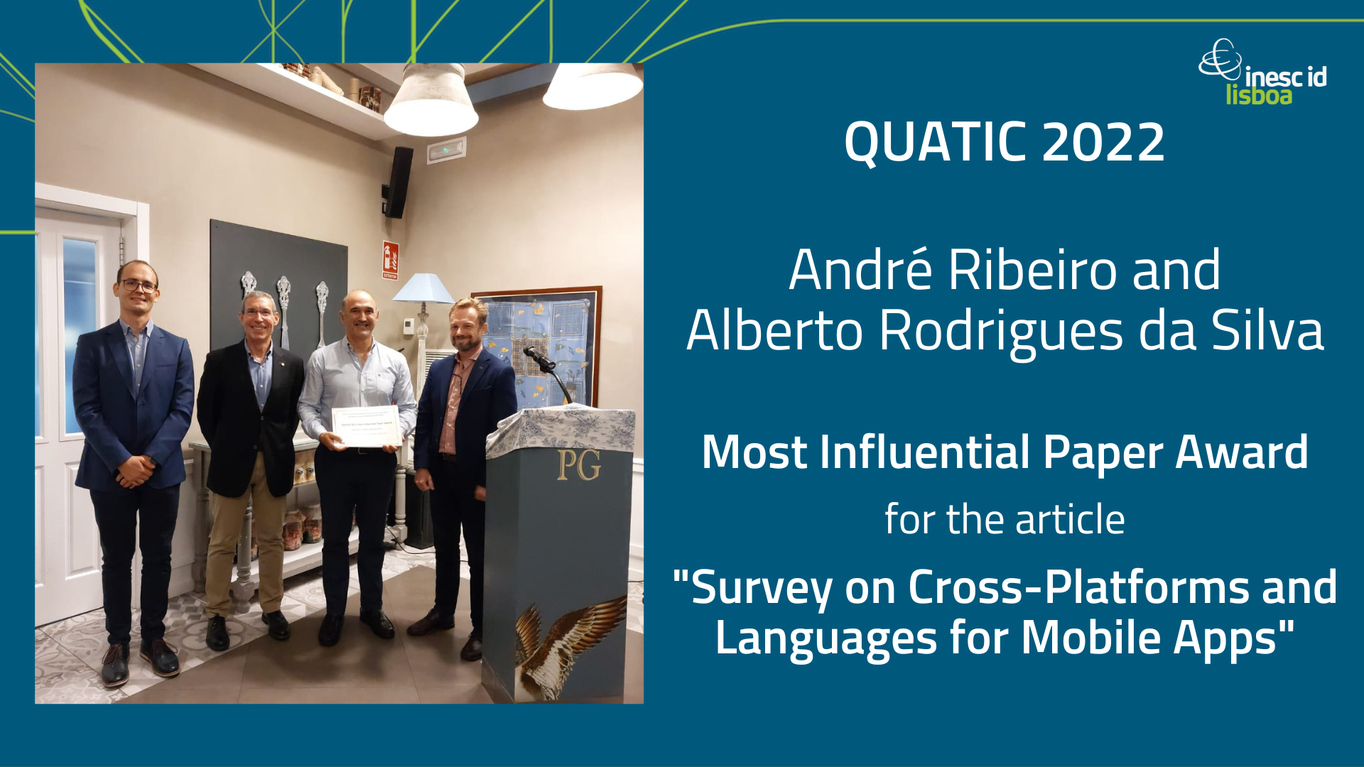 André Ribeiro former masters student in computer science and engineering at Instituto Superior Técnico (IST) and Alberto Rodrigues da Silva Associate Professor at the Department of Computer Engineering at IST and researcher at INESC-ID have received the “Most Influential Paper” Award at the QUATIC 2022 conference.