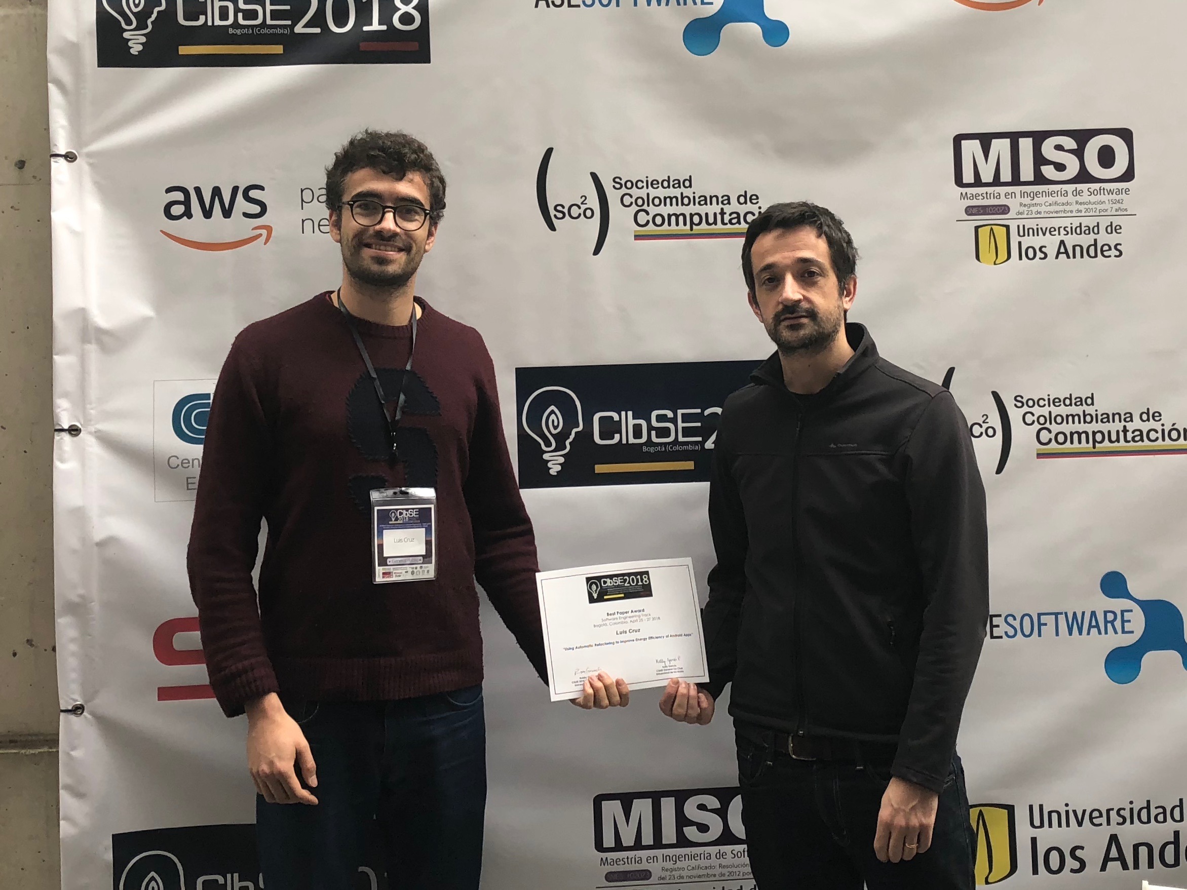 Luís Cruz and Rui Abreu, both researchers at INESC-ID (in the Information and Decision Support Systems research area) won a Best Paper Award at the XXI Ibero-American Conference on Software Engineering SET Track, with the paper “Using Automatic Refactoring to Improve Energy Efficiency of Android Apps”.