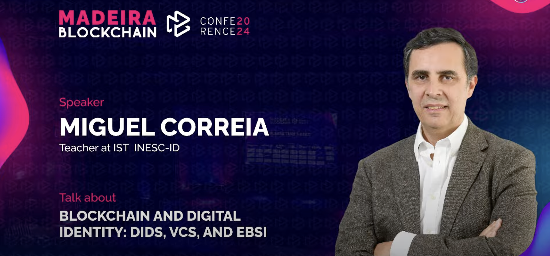 “If you pick a grain of sand, what is the probability that two of us pick the same one?” With this example, Miguel Pupo Correia, President of the INESC-ID Executive Committee, illustrates the probabilistic uniqueness of DIDs (Decentralised Identifiers), during his keynote “Blockchain and Digital Identity: DIDs, VCs, and EBSI”. This intervention took place during the Madeira Blockchain Conference 2024, which happened in Funchal at the end of the last year.