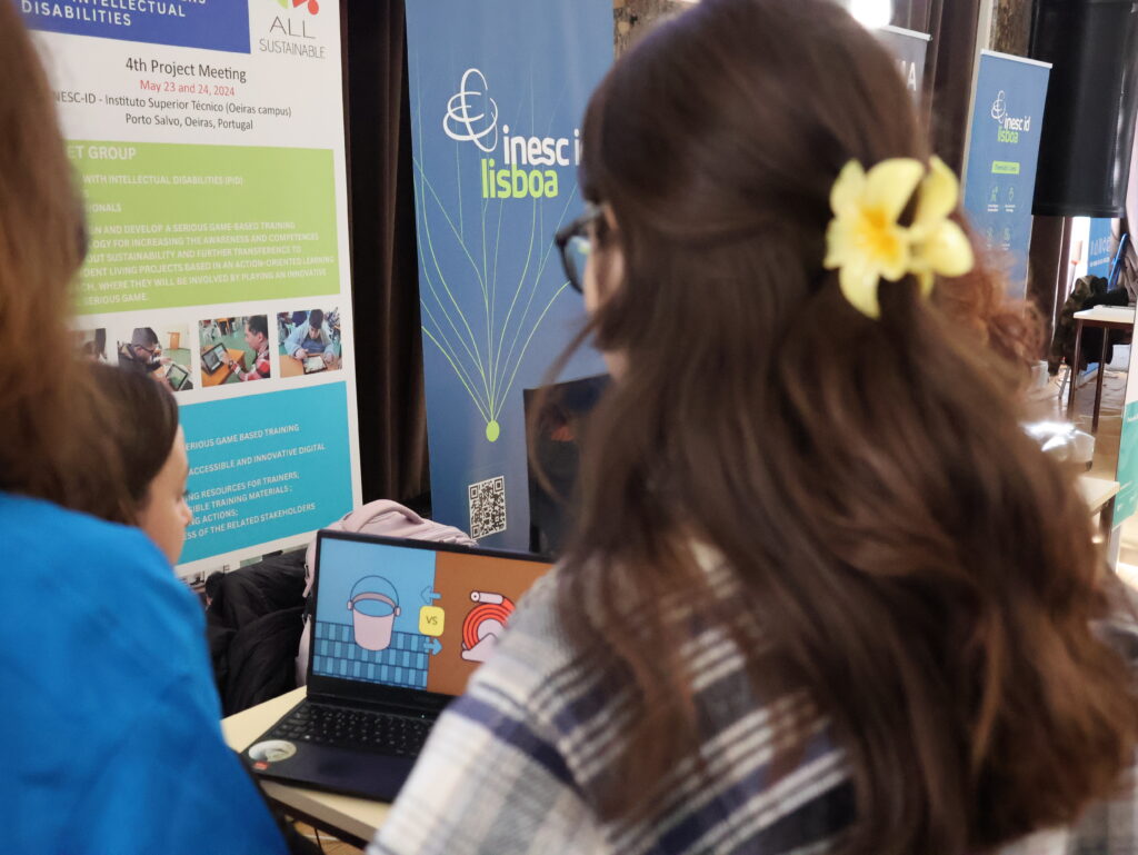 All Sustainable, a digital game designed to teach sustainability concepts, is the result of a collaboration between INESC-ID researchers at GAIPS and users from CERCIOEIRAS. Across five co-design sessions, participants contributed to the game’s content and structure, from defining challenges related to sustainability and independent living, to deciding gameplay elements like narrative, rules, and characters. This gave participants a chance to help develop something they found both relevant and fun, reinforcing the inclusive philosophy behind the project.
