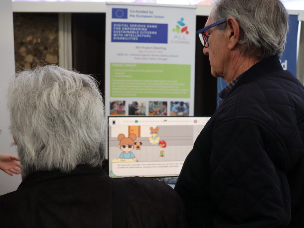 For Miguel, who enjoys showing the “human” side of games, the fact that All Sustainable was co-designed with people with intellectual disabilities allows to better understand their relationship with digital games and what really connects them to the experience. That was one of the key messages he and Inês Lobo shared with the many visitors, from parliamentary advisors and game industry professionals to university professors and students from across the country.