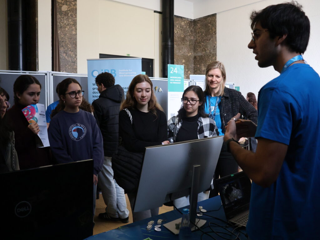 Just past 9 a.m, the nervous buzz among the team of INESC-ID researchers and volunteer students was palpable. With support from the Communication and Outreach Office, connections were tested, key topics mentally rehearsed and final touches applied at what was INESC-ID’s largest-ever presence at a science fair, featuring three booths and a demonstration arena. Everything was ready to welcome the record-breaking 2700 attendees entering Instituto Superior Técnico’s central pavilion, from aspiring engineers to knowledge-seeking families and science fans of all ages.