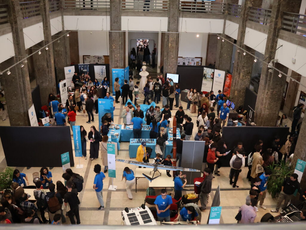 “If I light a match, will it fly too?” Eliane is “seven and a half” years old and has a curious mind that shines through in her sharp questions and wide-eyed wonder. Her inquiry came after Diogo Diniz, a third-year undergraduate student in Computer Science and a volunteer at Técnico’s booth (where INESC-ID was also present), explained how rockets ascend thanks to the downward force of fire—demonstrating this with a video of a rocket launch.