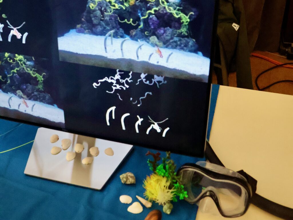 Finally, at our maritime-themed booth, IDSS researcher Sofia Pinto’s Master’s students Tomás Gomes and Guilherme Gonçalves (also first timers in outreach events) showcased their thesis research using AI-assisted video tracking to help biologists at the Lisbon Oceanarium. Their systems can detect camouflaged or hidden animals in aquarium video feeds, helping marine scientists better understand behaviour, stress and health of aquatic life in captivity.
