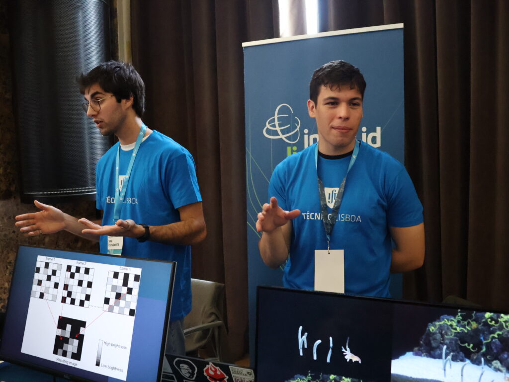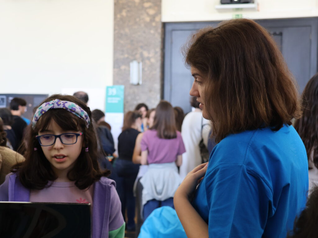 While Diogo Diniz was making his outreach debut, Pedro Amado—currently a master’s student supervised by INESC-ID researcher, Gonçalo Tavares—was already a seasoned participant in public engagement. “I really enjoy talking with kids,” he shared. “There’s a lack of natural vocation in students, and coming to Técnico without a sense of purpose requires extra effort,” he reflected.