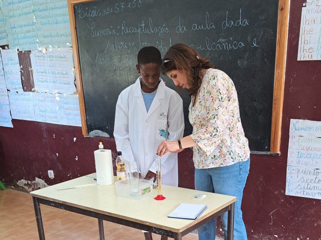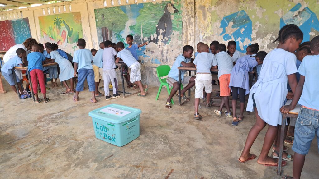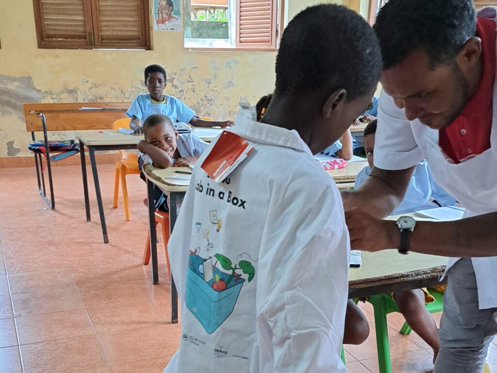 It was still early morning when a group of dedicated educators and excited students gathered on the small piscatorial sandy beach in front of Abade Elementary School. Surrounded by the lush northeastern forests of Príncipe Island, each student’s eyes sparkled as they opened a big ocean-blue box filled with a treasure trove of fun scientific experiments. They were there for the “Engenharia para Todos” (“Engineering for All”) training sessions, a project aimed at transforming education through hands-on science.