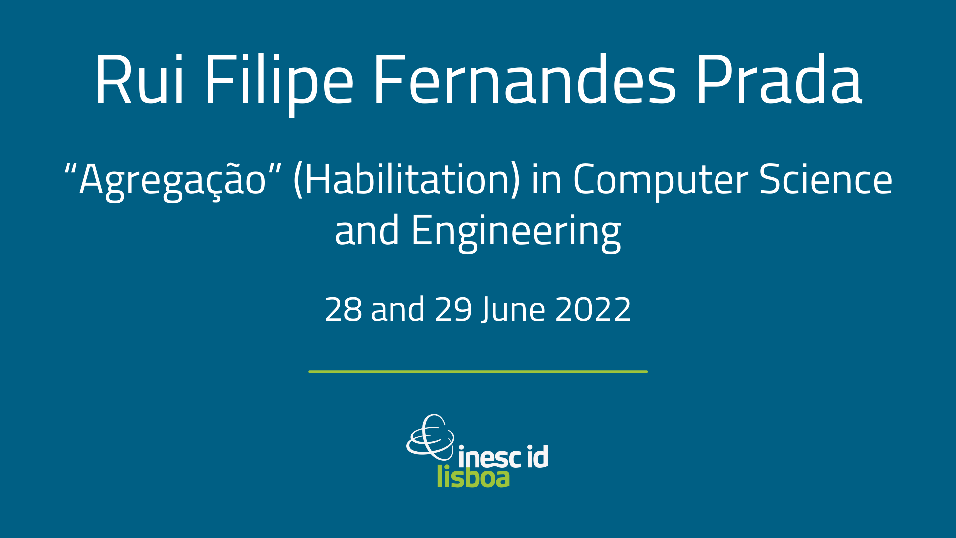 Rui Filipe Fernandes Prada, INESC-ID researcher within the Artificial Intelligence for People and Society Research Area and Associate Professor at the Department of Computer Science and Engineering of Instituto Superior Técnico, will present a course unit report and a seminar in order to be awarded his Agregação (Habilitation) in Computer Science and Engineering on 28th and 29th June 2022.