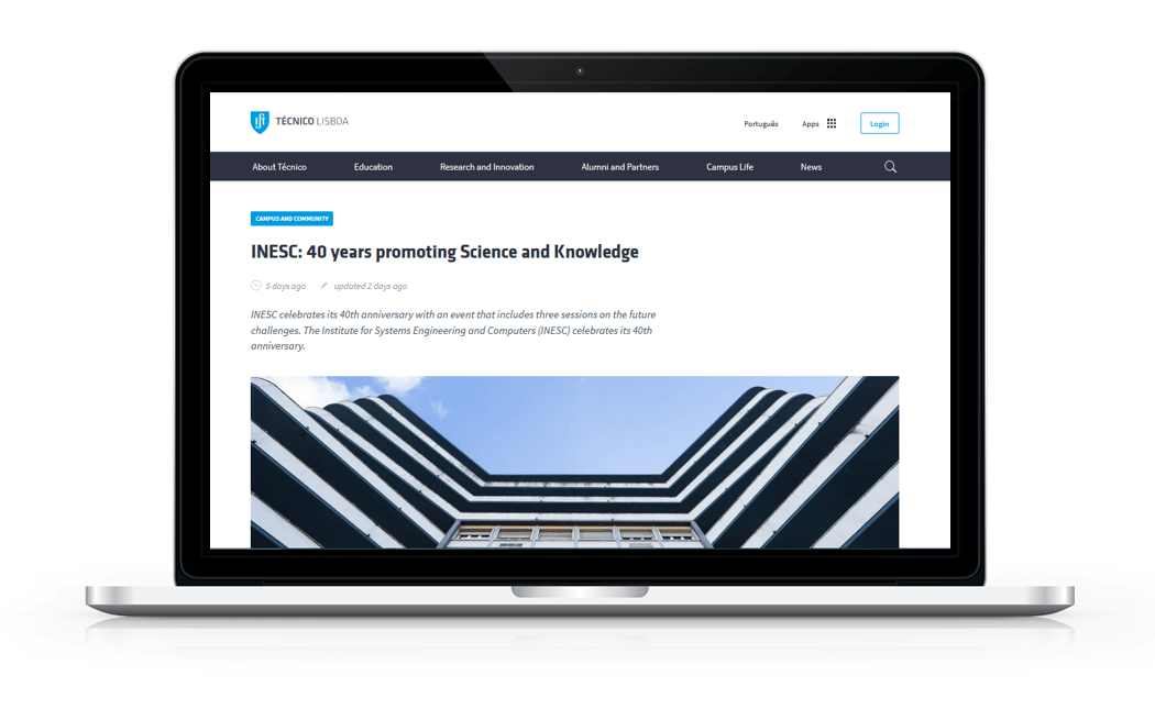 The article recently published “INESC: 40 years promoting Science and Knowledge”, also includes the testimonials of Professor José Tribolet, founder and President of the Institution, Professor Inês Lynce, President of INESC-ID, Engº Fernando Moreira, President of INESC Innovation and Professor Susana Freitas, co-director of INESC MN.