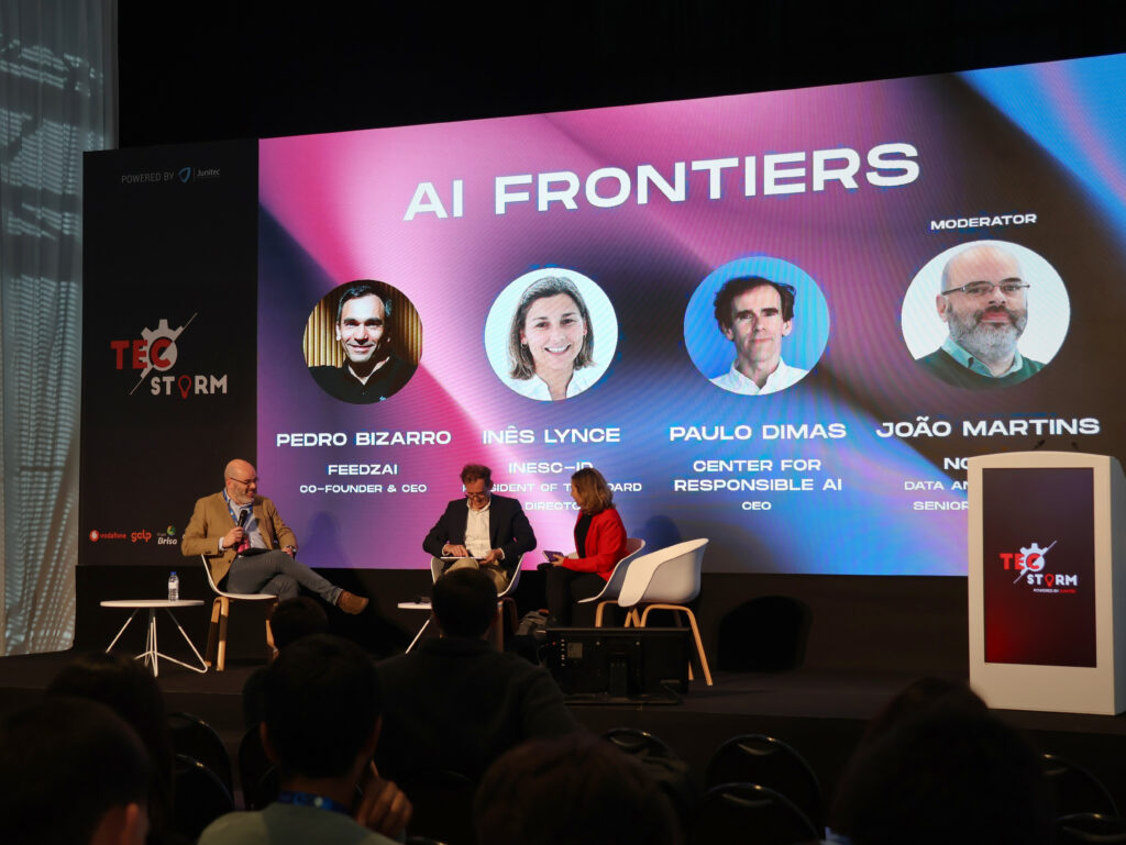 TecSummit, a unique event focused on entrepreneurship and technology, took place on March 28, at the Técnico Innovation Center (TIC), preceding the weekend-long TecStorm’25, the largest national university-level technology competition, organised by JUNITEC. The afternoon started with a roundtable on AI Frontiers, setting the scene for the following panels, which counted with our President of the Board, Inês Lynce as a speaker, alongside Paulo Dimas (CRAI) and moderated by João Martins (NOESIS).