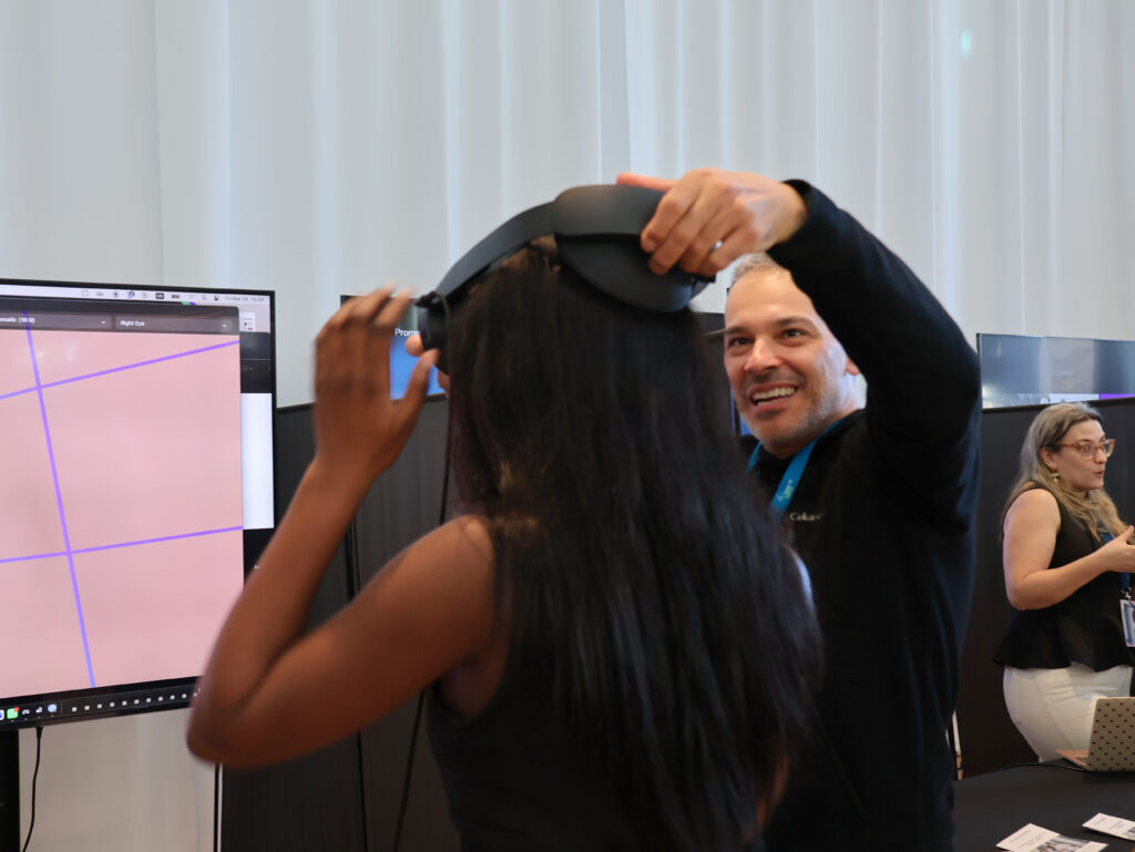 Ricardo Chaves, Joana Afonso and Pedro Martins showcased project DISCRETION, which intends to improve the security of military networks against emerging threats, while Larissa Montefusco provided passersby with an overview of EV4EU, a project, coordinated by Hugo Morais, with the ultimate goal of creating the conditions for electric mass deployment. Right next to EV4EU, Duarte Boto presented “REST: Interactive visualization tool for epidemic modelling”, which provides new insight in understanding the COVID-19 pandemic and for tracking future ones. Last but definitely not least, Anderson Maciel took over the big screen and, equipped with VR goggles, guided us through a 3D scheme of a colon, a new diagnosis VR tool that can prove itself as a new step for non-invasive diagnosis of health issues in the area.