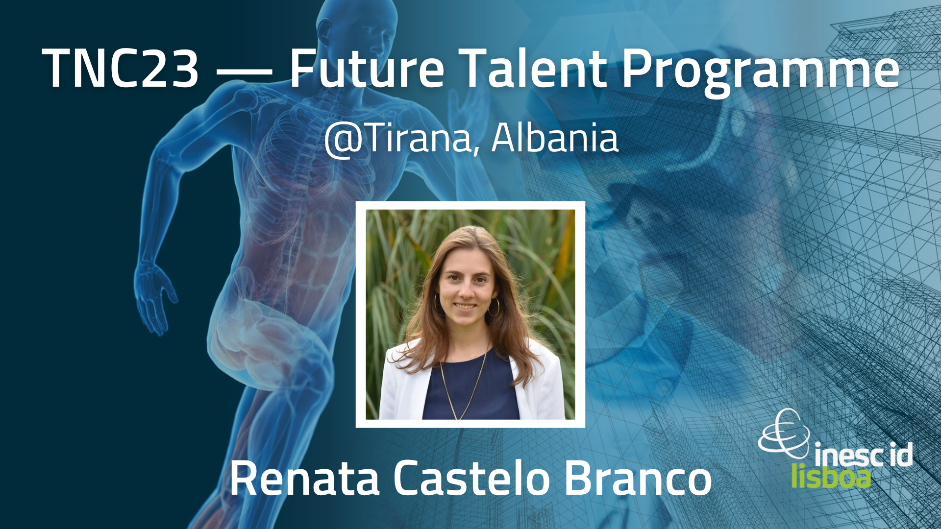 Together with João Brandão (a student at the Faculty of Engineering of the University of Porto), Renata — a PhD student in INESC-ID’s Graphics and Interaction research area — was chosen by FCCN (the Scientific Computing Unit of the Portuguese Foundation for Science and Technology, FCT) and GÉANT (the collaboration of European National Research and Education Networks, NRENs) to take part in TNC23’s Lightning Talk Challenge and share her story and project.